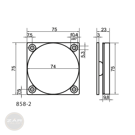 EFFEFF 838-2P round magnet 63,5mm diameter, with shock absorber EFFEFF 858-2 round magnet 74mm diameter dimensional drawing