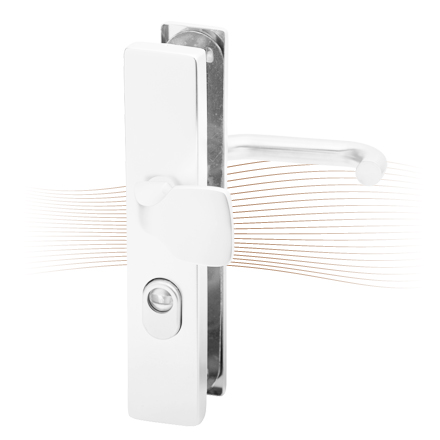 Burglary resistant long security fittings for entrance doors in knob-handle version. Cylinder lock profile (PC).