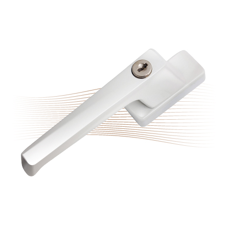 Robust, lockable window handle.Push cylinder, 2 keys.Keyed alike version.With fixing screws.Silver color.140 mm long x 42 mm high