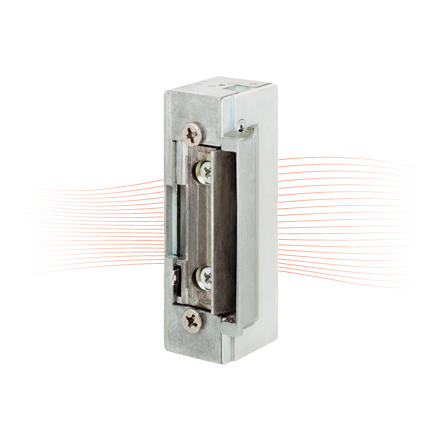 The door can only be opened while a contact is made. In alternating current operation, a humming noise is audible. In direct current operation, there is no noise. When mounting with a throw-open spring or throw-open bolt, the door is opened visibly after a contact is made.