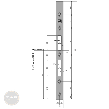 EFFEFF 509ZBS033 flat striking plate 330x24x6, steel chromed EFFEFF 509ZBS033 flat striking plate 330x24x6, steel chromed dimensional drawing
