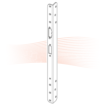 For single point mortise locks 309X, 409X, 509X and 709X.Adjustable bracket striking plate.500 x 30/34 x 3 mm. With screw-on attachment.Left.Stainless steel version.