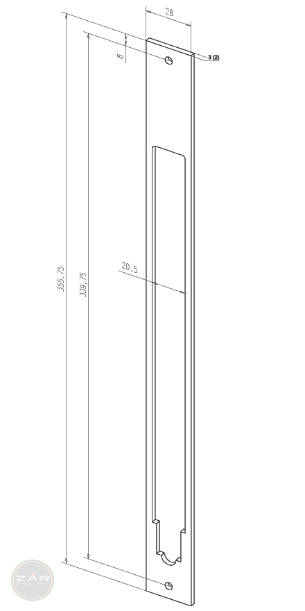 Angled distance holder plate. 356 x 24-28 x 2 mm.