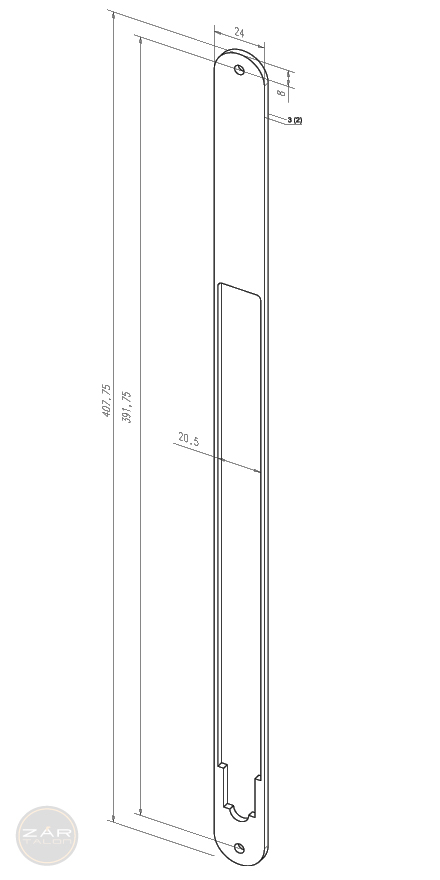 Angled distance holder plate. 408 x 24 x 3 mm.