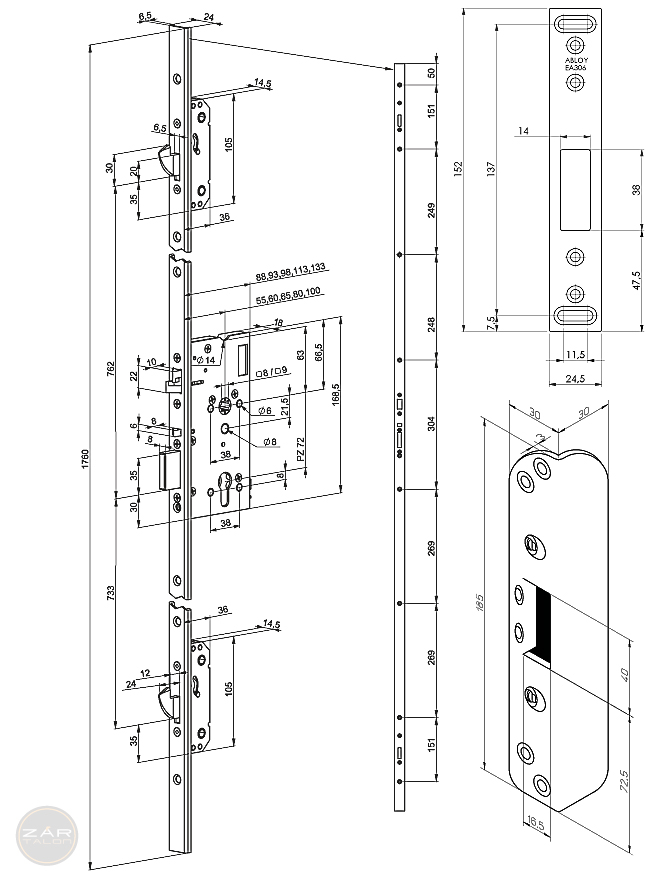 Additional sturdy hook bolts for increased burglary protection. The hooked bolts are not designed to apply pressure to door seals. The system will only work effectively if there is no side pressure on the bolt.