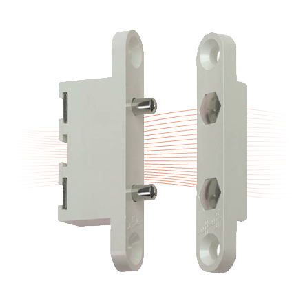 Reliable power transmission from the door frame to the door leaf. The two parts of power transmitters are mortise-fitted in the frame and in the door leaf. When the door is closed, the spring contacts touch and form an electrical circuit to the door strike.