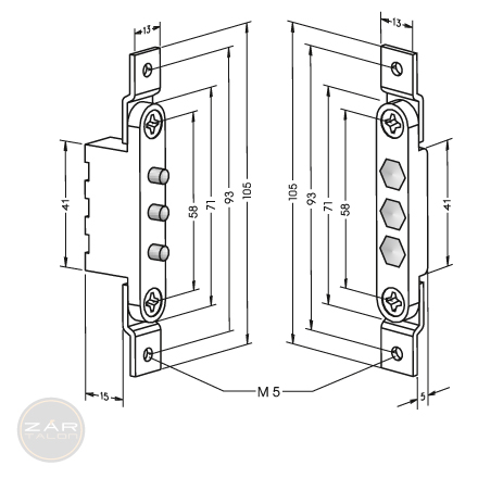 Reliable power transmission from the door frame to the door leaf. The two parts of power transmitters are mortise-fitted in the frame and in the door leaf. When the door is closed, the spring contacts touch and form an electrical circuit to the door strike.