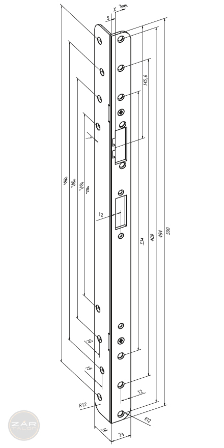 Bracket renovating striking plate, size 500x24/34x3 mm.