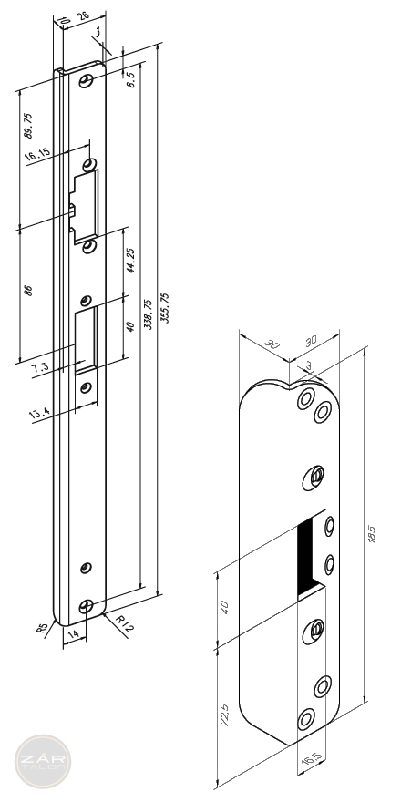 Bracket striking plate, size 355.75x26/10x3 mm.