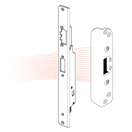 The MEDIATOR® linear electric strike has been especially developed for this lock solution. Manufactured to effeff's established high quality standards, it is available with fix adjustment. Different spacer plates to align the rebate clearance are available with the striking plate used. A sliding piece is available to bridge notches and unevenness in the profile.The MEDIATOR® linear electric strike is motor-driven and fulfils all the requirements for use in busy apartment doors.