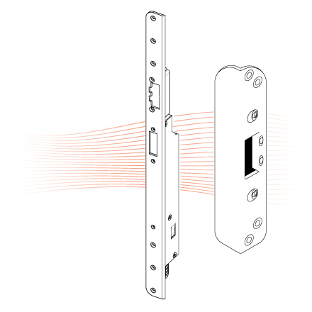 MEDIATOR 65M linear electric strikes for multi point MEDIATOR locks with bracket striking plate.