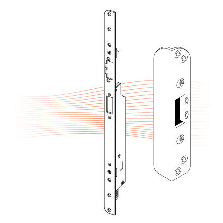 MEDIATOR 65M linear electric strikes for multi point MEDIATOR locks with bracket striking plate.