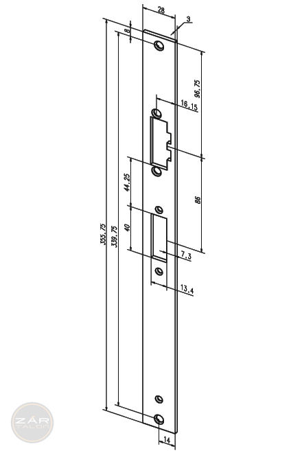 Face and striking plate distance: min. 2 mm, max. 5.5 mm