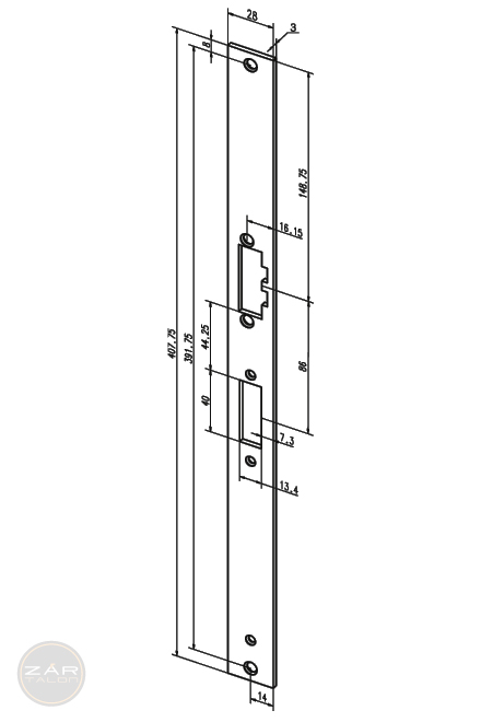 Renovating striking plate size 407.75x28x3 mm.