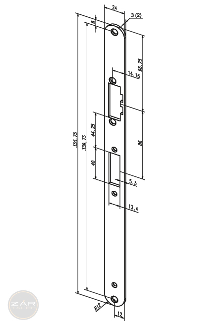 Rounded striking plate, size 355.75x24x3 mm.