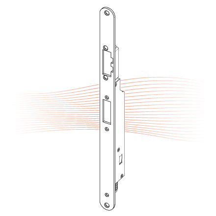The MEDIATOR® linear electric strike has been especially developed for this lock solution. Manufactured to effeff's established high quality standards, it is available with fix adjustment. Different spacer plates to align the rebate clearance are available with the striking plate used. A sliding piece is available to bridge notches and unevenness in the profile.The MEDIATOR® linear electric strike is motor-driven and fulfils all the requirements for use in busy apartment doors.