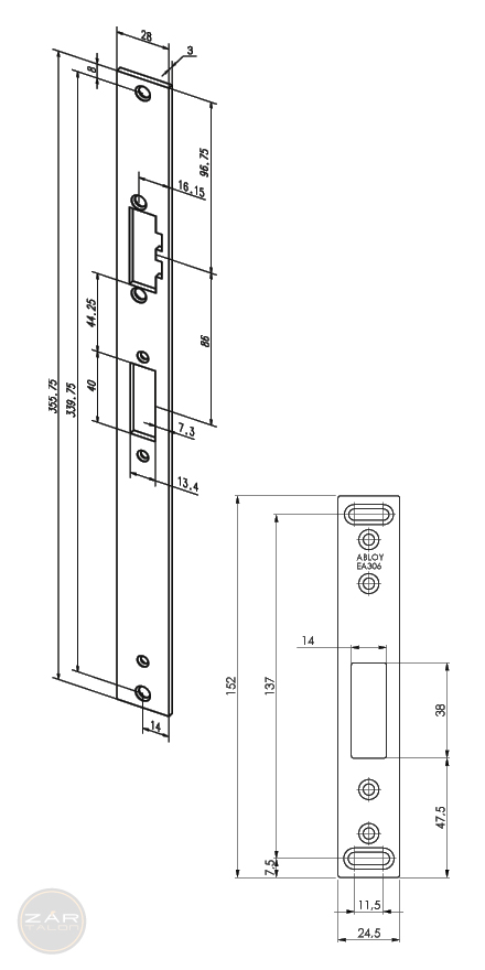 Face and striking plate distance: min. 2 mm, max. 5.5 mm