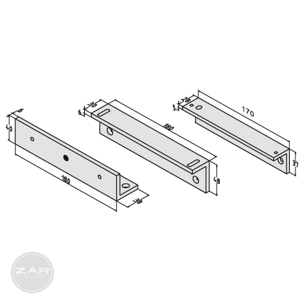 Z-shaped mounting brackets (flush mounting, doors opening inwards).For micro magnets.