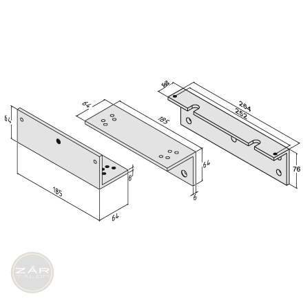Z-shaped mounting brackets (flush mounting, doors opening inwards).For maxi magnets.Aluminium version.