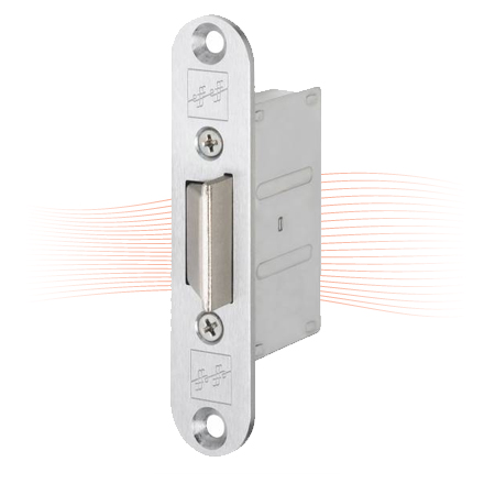 Die Falle ist von 11,5 mm bis 17 mm vorstehend justierbar. Bauseits kann somit eine Anpassung an den Türspalt vorgenommen werden. Die vollständige Betätigung des Rückmeldekontaktes ist damit gewährleistet.