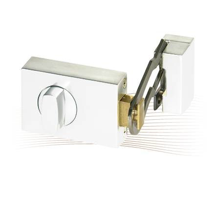 Von innen and die Tür installierbares Zusatzschloss mit Sperrbügel.