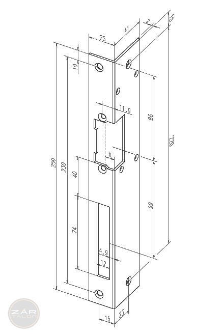 Eckige Standard-Winkelschließbleche mit Fallen- und Riegelausschnitt.