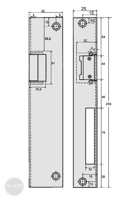 Für Schlossmodelle 809 und 809E.250 x 25 x 2 mm.Winkelschließblech, links.Edelstahl Ausführung.