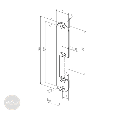 Abgerundete Kurz-Flachschließbleche mit Fallenausschnitt.