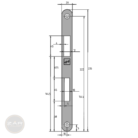 Für Schlossmodelle 809 und 809E.235 x 20 x 3 mm.Universal (links-rechts).Edelstahl Ausführung.