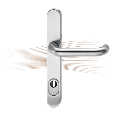 Sicherheits Drücker-Außenbeschlag für Rohrahmen-Türen und Panikstangen der Serie 8000.