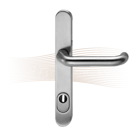 Sicherheits Drücker-Außenbeschlag für Rohrahmen-Türen und Panikstangen der Serie 8000.