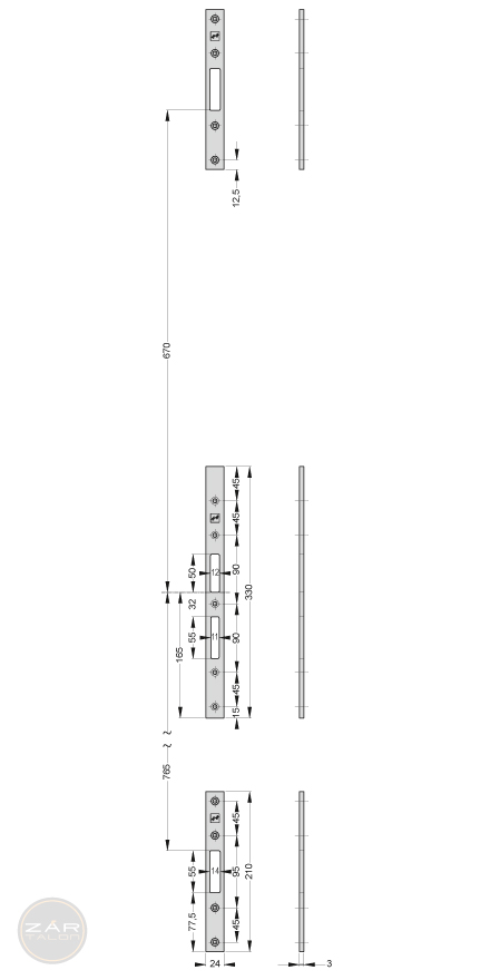 Für Mehrfachverriegelungen 319, 519 und 819.3-teiliges Flachschließblech-Set.1x 330 x 2 mm, 2x 210 x 3 mm.Universal (links-rechts).Edelstahl Ausführung.