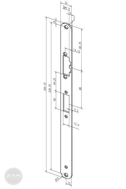 EFFEFF Z09-60A Flachschließblech 355,75x24x3, Edelstahl EFFEFF Z09-60A Flachschließblech 355,75x24x3, Edelstahl Maßzeichnung