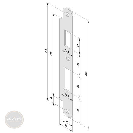 Für Schlossmodelle 309X-709X und für das Hauptschloss der Modelle 329X-729X.232 x 32 x 3 mm.Universal (links-rechts).Edelstahl Ausführung.