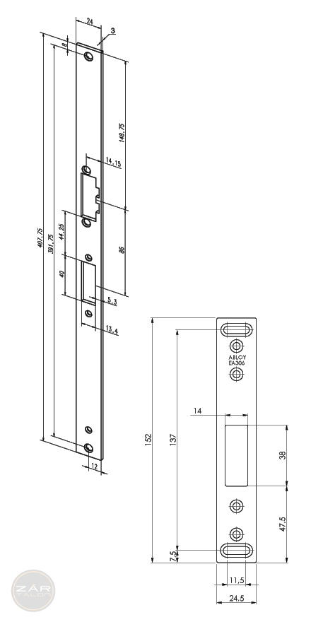 Renovierungsschließblech-Abmessungen 407,75x24x3 mm.