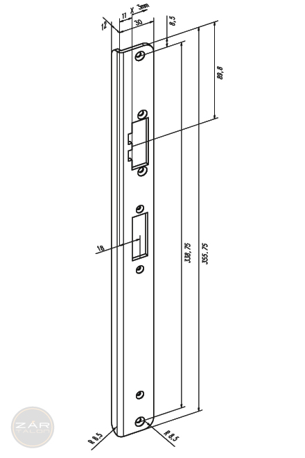 Schließblech-Abmessungen 355,75x30/12x3 mm.