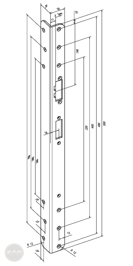 Renovierungsschließblech-Abmessungen 500x30/34x3 mm.