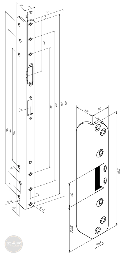 Renovierungsschließblech-Abmessungen 500x26/34x3 mm.