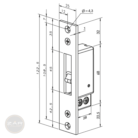 Durch die geschlossene Gehäuseform wird speziell bei Stahlzargen und Profilen der Riegelausschnitt rückseitig geschlossen. Der Profilinnenraum ist nicht sichtbar. Der Riegelschaltkontakt wird zuerst auf das Schließblech montiert, dann wird das Schließblech an der Zarge befestigt.