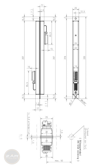 - Befestigungskappen zur Montage an Türrahmen und Türblatt. Zarge und Tür können getrennt gefertigt und geliefert werden. Montage und Demontage können ohne elektrotechnische Kenntnisse erfolgen. Bei Bedarf können der Rahmen und das Blatt für Reparaturen getrennt werden.
