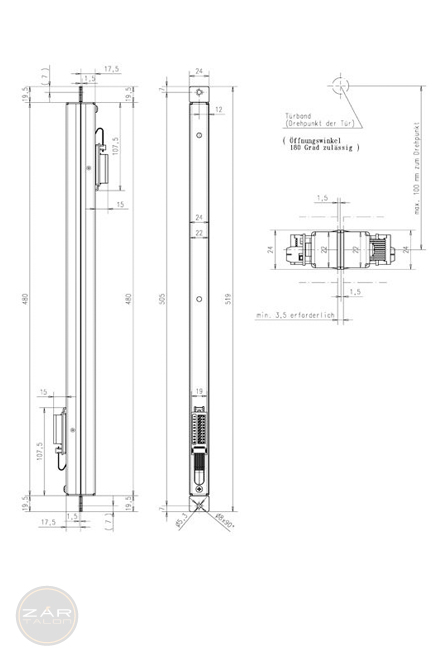 - Befestigungskappen zur Montage an Türrahmen und Türblatt. Zarge und Tür können getrennt gefertigt und geliefert werden. Montage und Demontage können ohne elektrotechnische Kenntnisse erfolgen. Bei Bedarf können der Rahmen und das Blatt für Reparaturen getrennt werden.